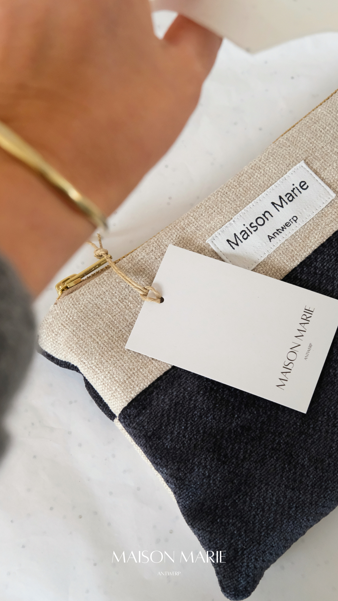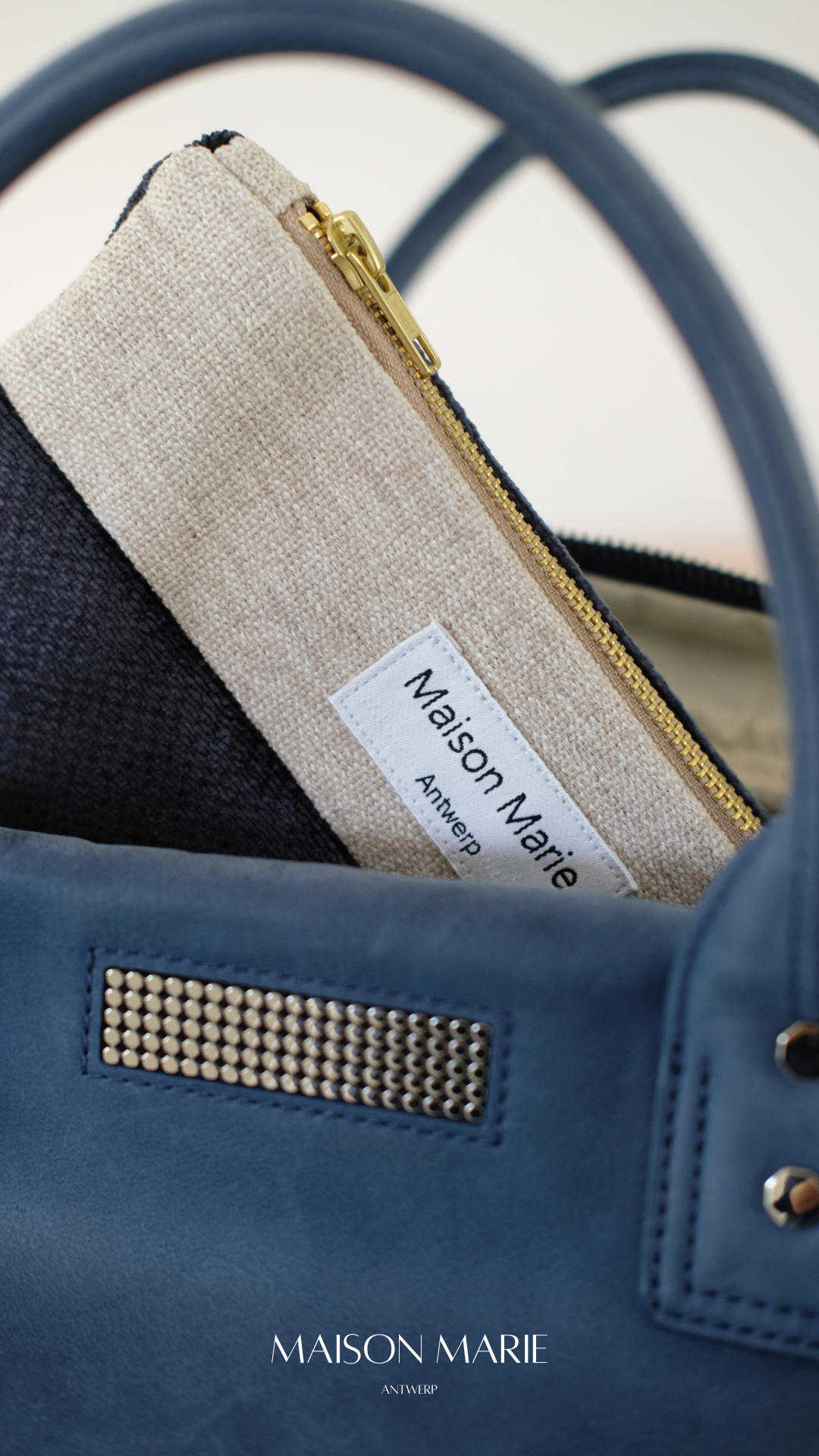 Pochette Limited Edition marineblauw - beige